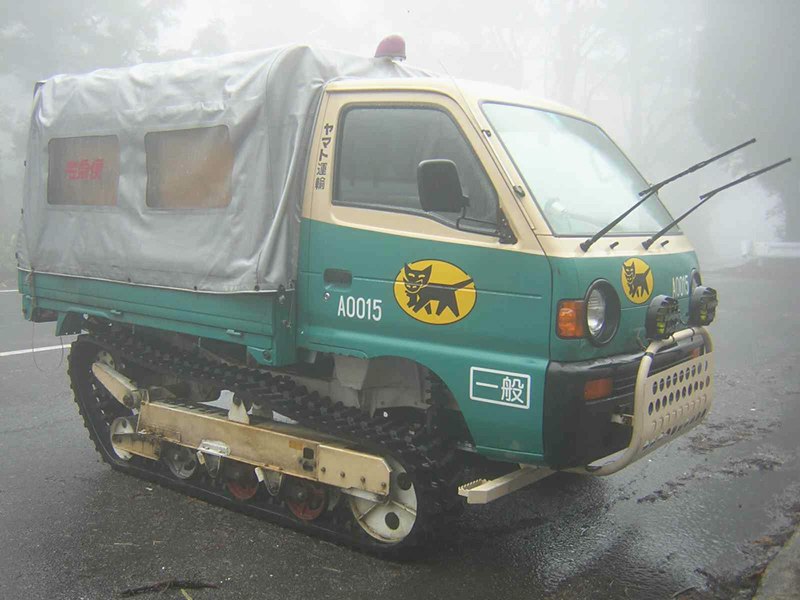 ヤマト運輸さんは、スゴイです!まず上の写真を見てくださいトラック?いやいや、キャタピラー車が荷物を運んでいる様子の写真です。道なき雪山をガンガン突き進み、荷物を届けているらしい。確かに「ゆうパック」では出来ないことかもしれませんねぇ〜!?